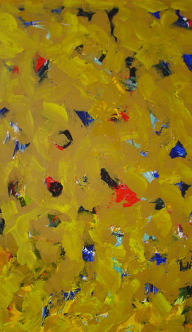 in het werk domineert de materie. ieder schilderij is in de basis verf op doek.